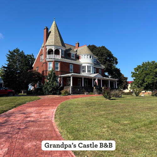 A historic home turned charming B&B, Grandpa’s Castle blends old-world architecture with warm hospitality. Wrap-around porches, antique details, and cozy common areas make this a guest favorite.