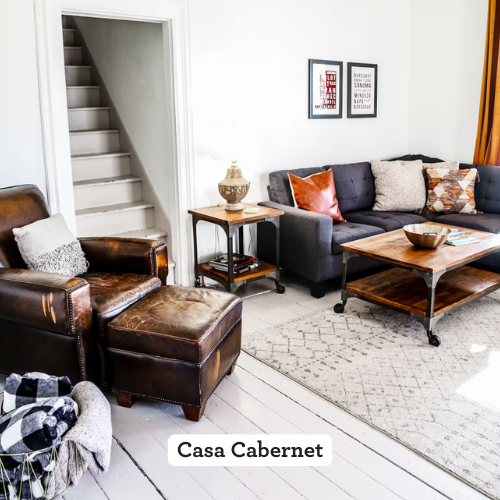 A beautifully styled farmhouse rental tucked in the heart of wine country. Casa Cabernet mixes rustic charm with modern design, making it a great spot for small groups who want space, style, and easy winery access.