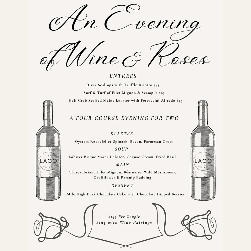 This Valentine’s Day, join Lago Enoteca for an intimate evening of food, wine, and atmosphere. Guests may choose between a four-course dinner for two or a limited Valentine’s Day entrée menu.