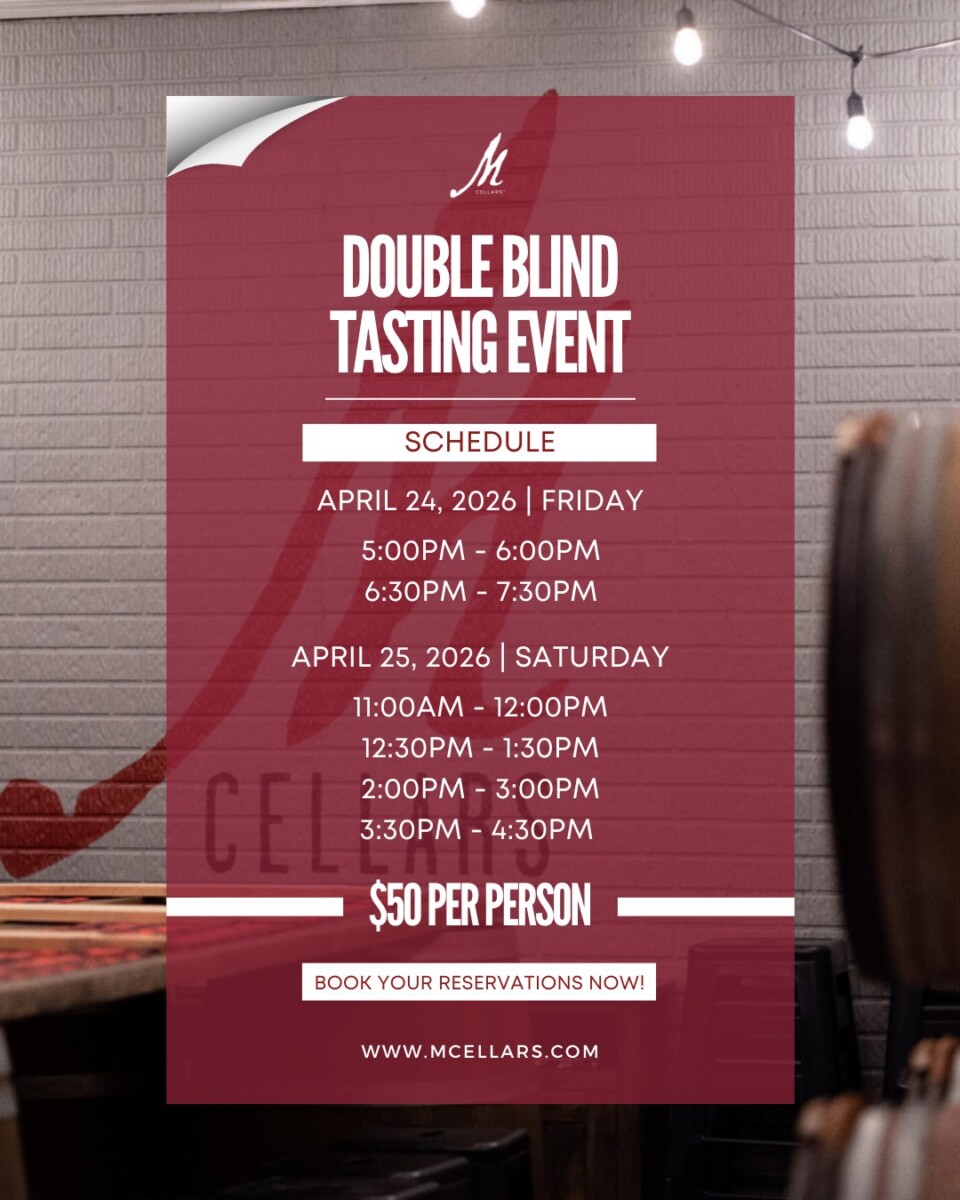 Join M Cellars for their Double Blind Tasting Experience β a fun and interactive event where guests will sip, sniff, and guess their way through a guided tasting in a relaxed setting. Light snacks will be provided, and a special prize will be awarded to the winner.