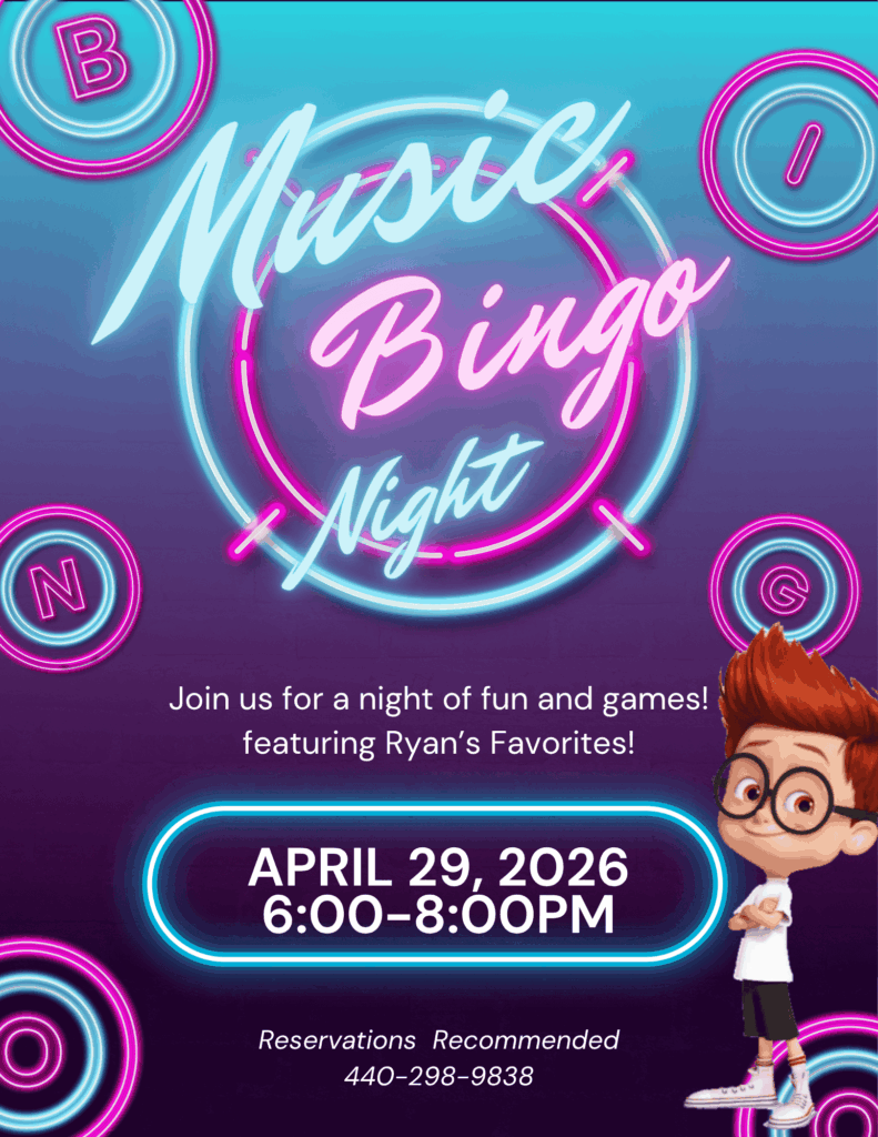 Join GRC for Music Bingo: Ryan’s Favorites! Featuring: