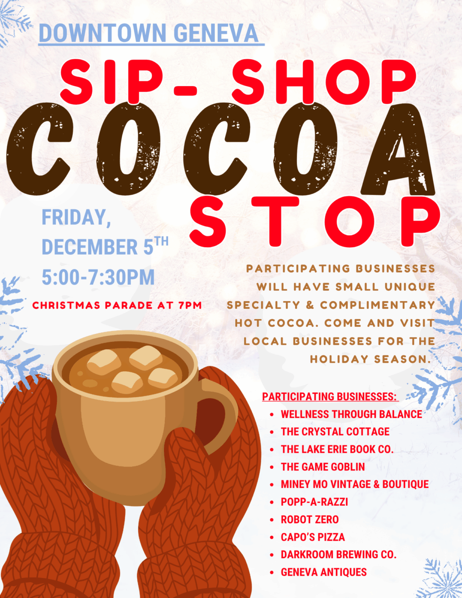 Come Sip, Shop and Cocoa Stop! The Geneva Business Association and downtown businesses are sponsoring a complimentary cocoa crawl the night of downtown Geneva's Christmas Parade (Friday, December 5th) from […]