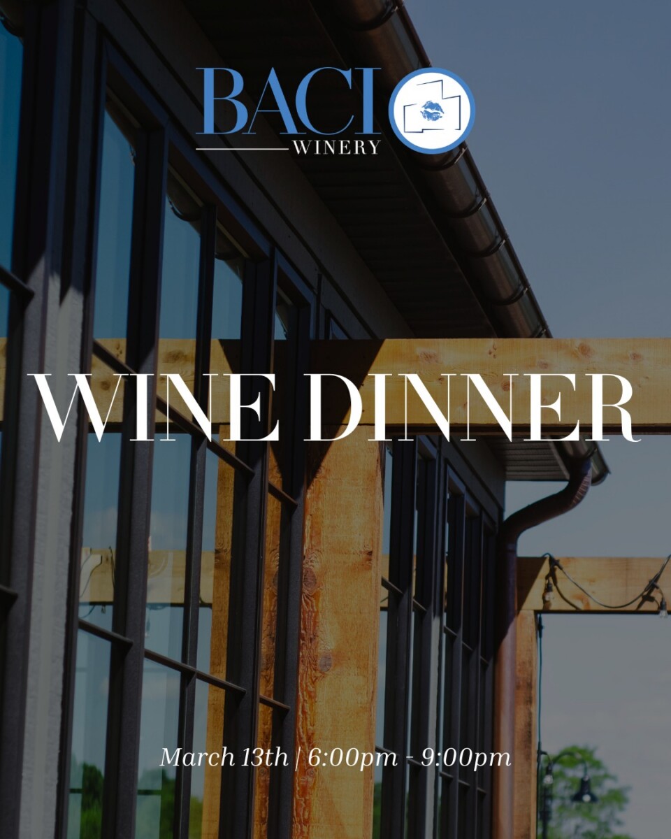 Baci Winery 7800 Warner Rd, Madison, OhioJourney through a culinary and wine tasting delight. A tasting for the senses featuring exceptional cuisine paired with the best of Baci Winery vintages. Join Baci on Fri, March 13 at 6pm for this spectacular event. Secure your tickets today. Price is subject to tax and gratuity.Wine dinner will be held in the winery Tasting […]