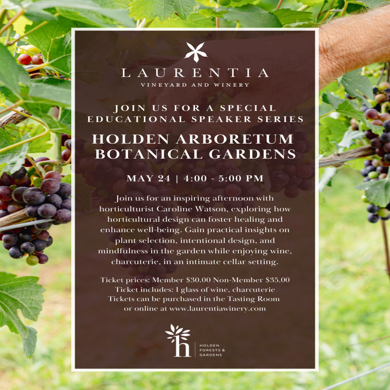 Join Laurentia Vineyards for an inspiring afternoon with horticulturist Caroline Watson, exploring how horticultural design can foster healing and enhance well-being. Gain practical insights on plant selection, intentional design, and mindfulness in the garden while enjoying wine, charcuterie, in an intimate cellar setting. Ticket prices: Member $30.00 Non-Member $35.00 Ticket includes: 1 glass of […]