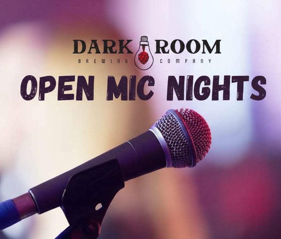 Darkroom Brewing Co. hosts Open Mic Night from 6–8 PM, welcoming musicians, comedians, poets, and other performers. The evening is hosted by B. Pierson and offers a relaxed space to share original work and enjoy the community vibe. 🎤